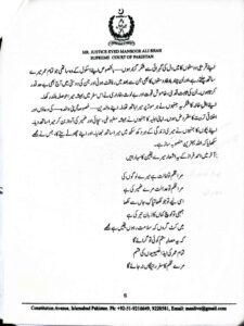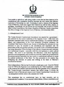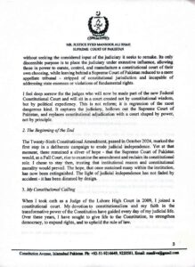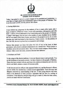 “میں نے ادارے کی عزت، ایمانداری اور دیانت کے ساتھ خدمت کی۔ سپریم کورٹ کے سینئر ترین جج کی حیثیت سے آج اپنا استعفیٰ پیش کرتا ہوں۔”