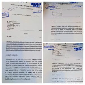اسلام آباد/کوئٹہ(ویب ڈیسک) بلوچ یکجہتی کمیٹی کے مرکزی رہنماؤں ڈاکٹر ماہ رنگ بلوچ، بیبو، بیبرگ ودیگر اسیررہنماؤں نے اپنی ضمانت مسترد ہونے کے خلاف سپریم کورٹ آف پاکستان سے رجوع کر لیا ہے۔